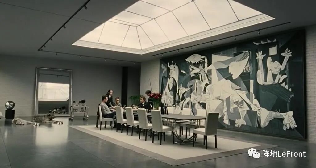 然而,“艺术方舟”是一个相当矛盾的机构。人们从来都不太清楚它的功能到底是什么。在电影的另一个场景中,毕加索的《格尔尼卡》被用作私人晚宴的装饰。艺术方舟可能是一个已经变得如此安全的机构,以至于只有方舟的主管、他们的孩子和他们的仆人才被允许看到艺术品。但它也可能是国际自由港艺术存储处的化身,在那里,艺术作品消失在免税存储方块的无形之中。