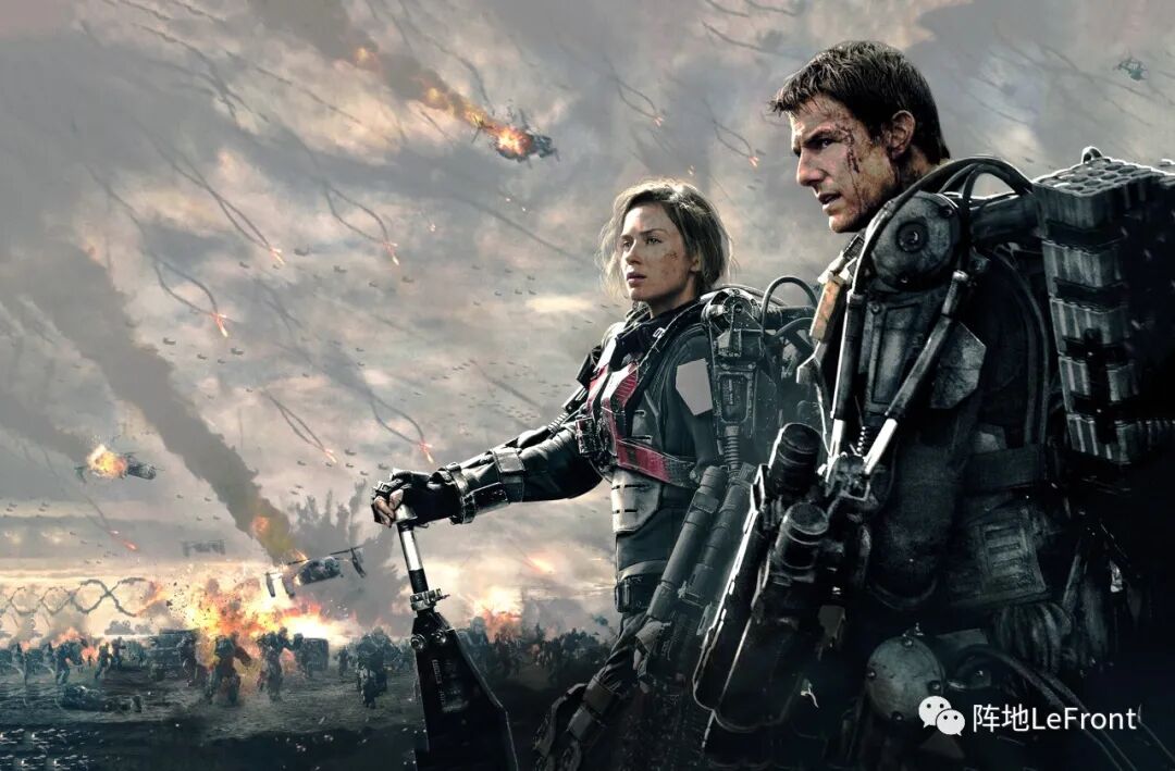 答案是否定的。让我们再来看看《明日边缘》,看看它是如何解决循环问题的。它为停滞不前的问题,为逃离历史即重复的问题提供了一个意想不到的解决方案。这部电影是根据樱坂浩的小说《你所需要的一切乃是杀戮》(All You Need Is Kill)改编的,该小说从按下视频游戏机上的重启按钮的经历中建立了一种叙事方式。因此,电影叙述了游戏者被卡住、无法完成特定关卡的僵局,这并非巧合。但游戏玩家已经习惯了这一点:进入下一关是他们的使命。游戏者不是一个重演者,他不会从不得不反复玩同一个关卡或无休止地重演历史模型中获得乐趣。他会上网查找论坛,弄清楚如何通过这个关卡,然后继续前进。在游戏中(至少是大多数游戏),每个关卡、每个重复序列、每个循环都有一个出口。很可能有一种武器或工具就藏在某个柜子里,玩家可以用它来消灭任何敌人并完成这一关。《明日边缘》不仅坚持认为有一个明天,而且我们还被定位在它的边缘,因而有可能完成这一关并从循环中挣脱出来。游戏可以演变成玩耍。而在这里,“游戏”的模糊性是有帮助的。一方面,游戏是关于规则的,如果一个人要继续下去,就必须掌握这些规则。另一方面,游戏也是关于新的、共同的规则的即兴创造。因此,重演被取消了,转而支持游戏走向玩耍,它可能是也可能不是另一种形式的表演。