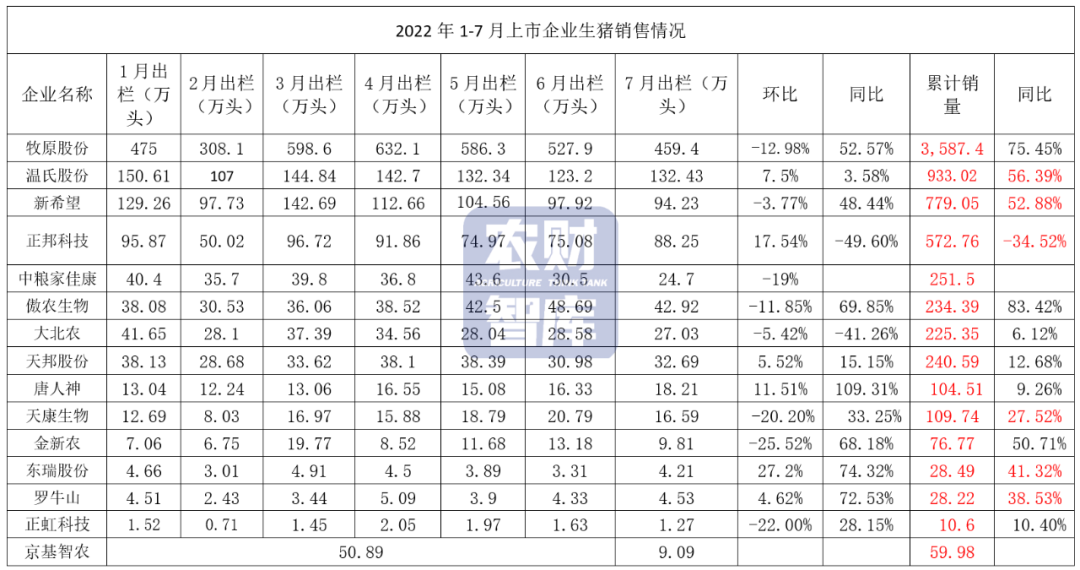 2022年1-7月规模以上生猪定点屠宰企业屠宰量16806万头,同比增长28.5%。