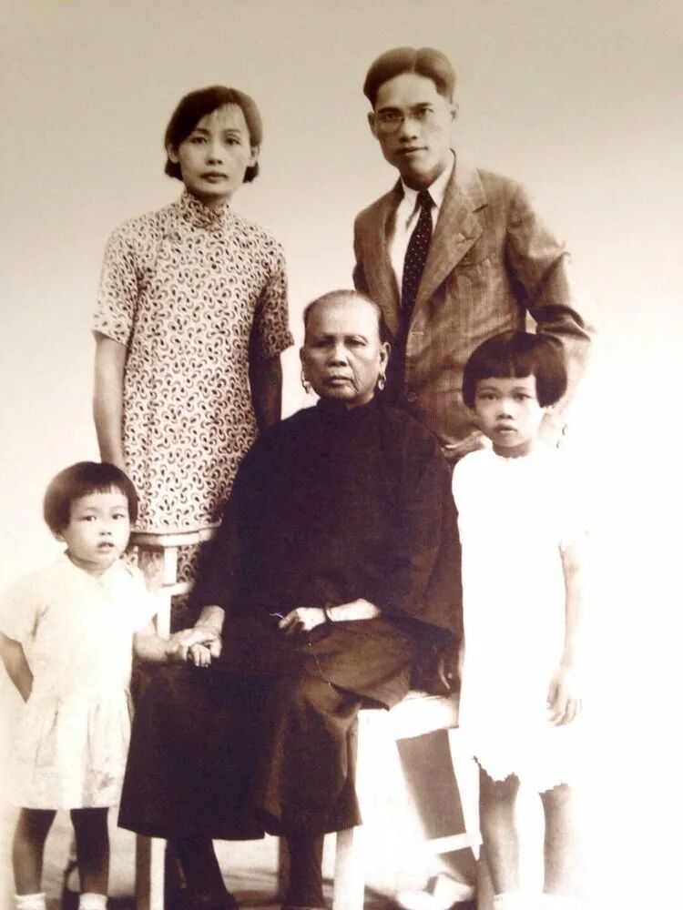 外祖父与家人合照。坐者是他的母亲,左立者是我的外婆,右边女孩是我母亲,左边女孩是我二姨。