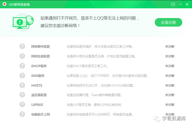 尽管360的声名狼籍,但不得不说它的断网急救箱十分的好用!(能解决95%以上无网络或者网页打不开的问题)