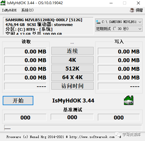 2-、IsMyHdOK v3.34.0_硬盘速度基准测试小工具