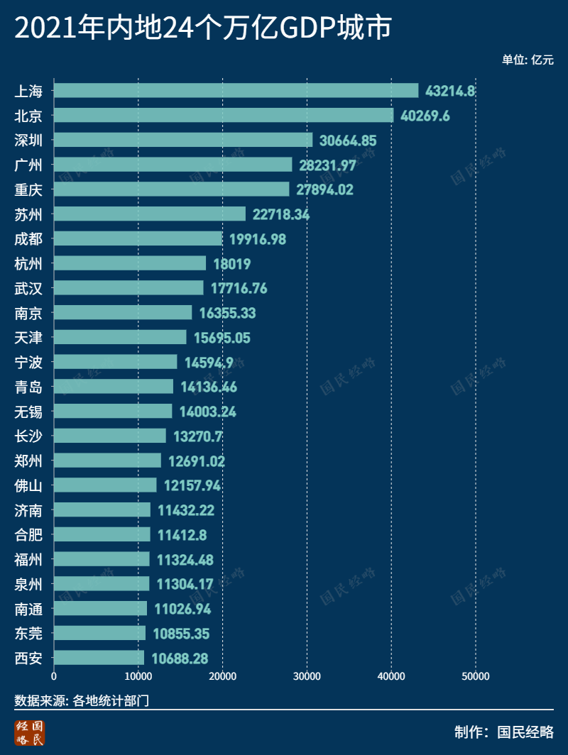 2021年,虽然一度遭受疫情冲击,南京仍以600多亿的领先优势,稳守第10城之位。