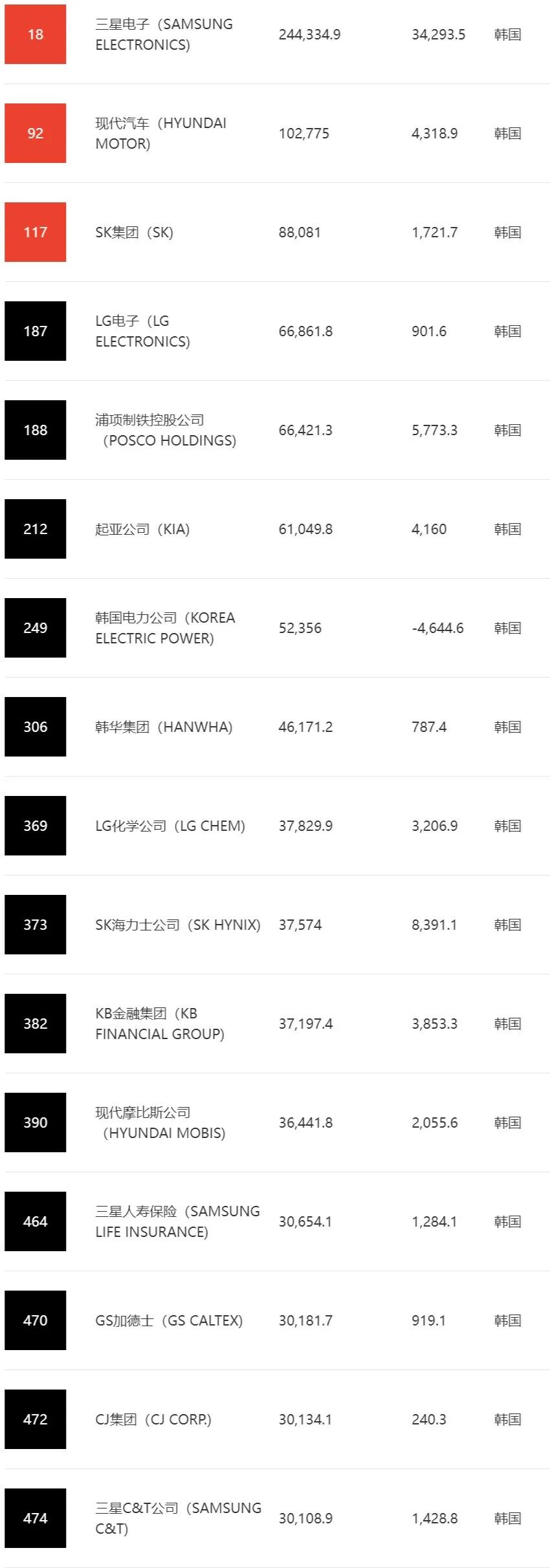 根据2022年世界500强榜单,韩国共有16家企业入围,首尔一地就占了13家。