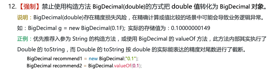 《阿里巴巴 Java 开发手册》中提到:“为了避免精度丢失,可以使用 BigDecimal 来进行浮点数的运算”。