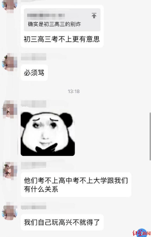 “他们考不上跟我们有什么关系,我们高兴不就得了”。