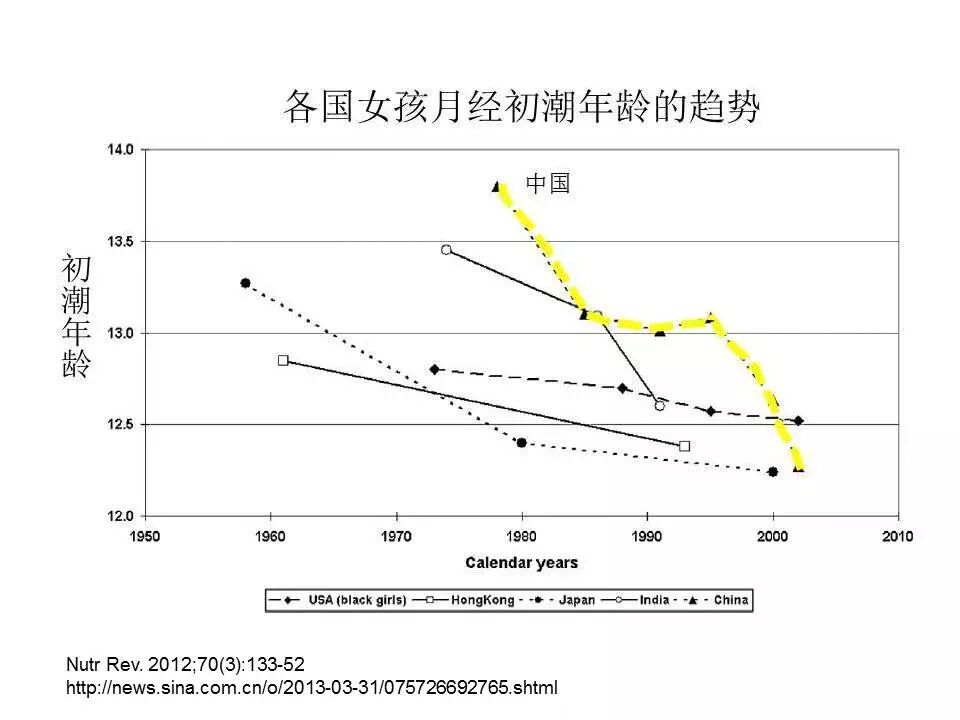 研究发现,全球儿童的性发育呈逐年提早的趋势。1980年,中国女孩的平均月经初潮年龄是13.75岁;到了2002年,初潮年龄提前到12.25岁。