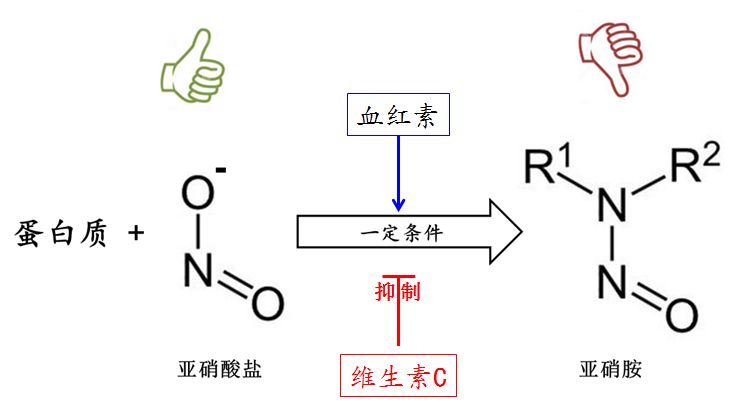 在这个反应中,虽然蛋白质可以来自动植物,但是有两个因素导致亚硝胺大多数情况下,是由肉类蛋白和亚硝酸盐之间反应而产生的。