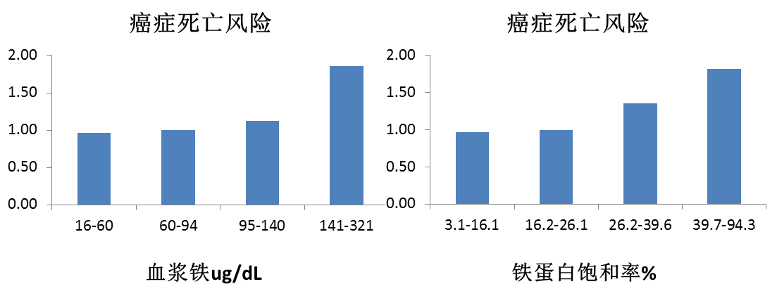 动物来源的血红素铁不但在肠道催化致癌物亚硝胺的形成,进入血液后,也更容易造成铁过量,大幅增加癌症死亡的风险。