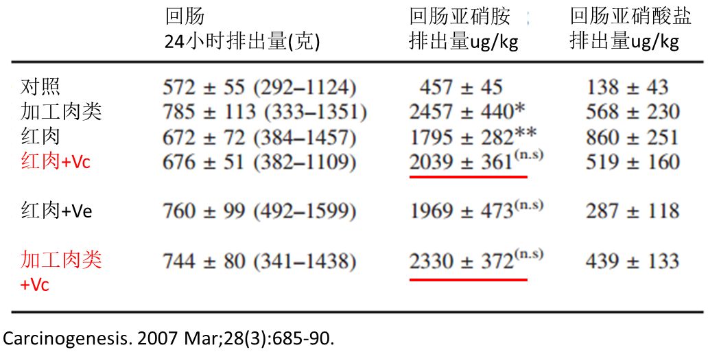 很不幸,实验数据告诉我们,同时摄入维生素C,不能阻止亚硝胺在肉类蛋白存在下的合成。