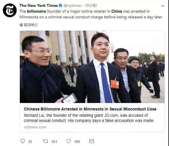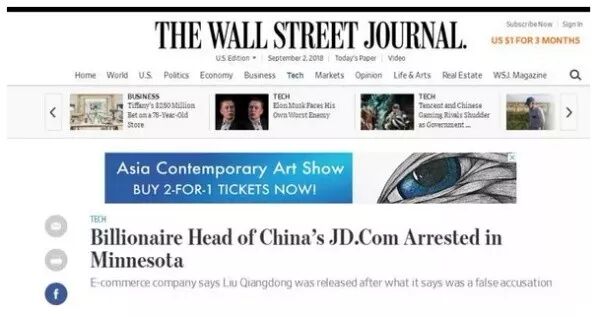 刘强东美国性侵丑闻,为什么美国的三大主流媒体《纽约时报》、《华尔街日报》、美联社都是在第一时间进行头版头条报道、整齐划一?其中缘由,明白人一点即明。