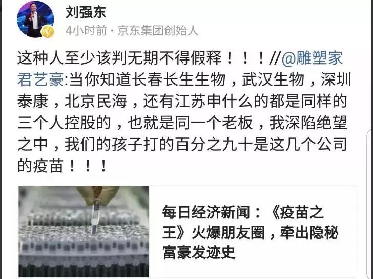 比如,一个月前轰动全国的长生疫苗事件,刘强东第一个站出来暴怒声讨!广大网友纷纷为刘强东点赞,然而,刘强东刚声讨疫苗没几天,三年前澳洲悉尼的所谓性侵案就被翻出来大炒特炒。明眼人一看就知道刘得罪了国内外资本集团。