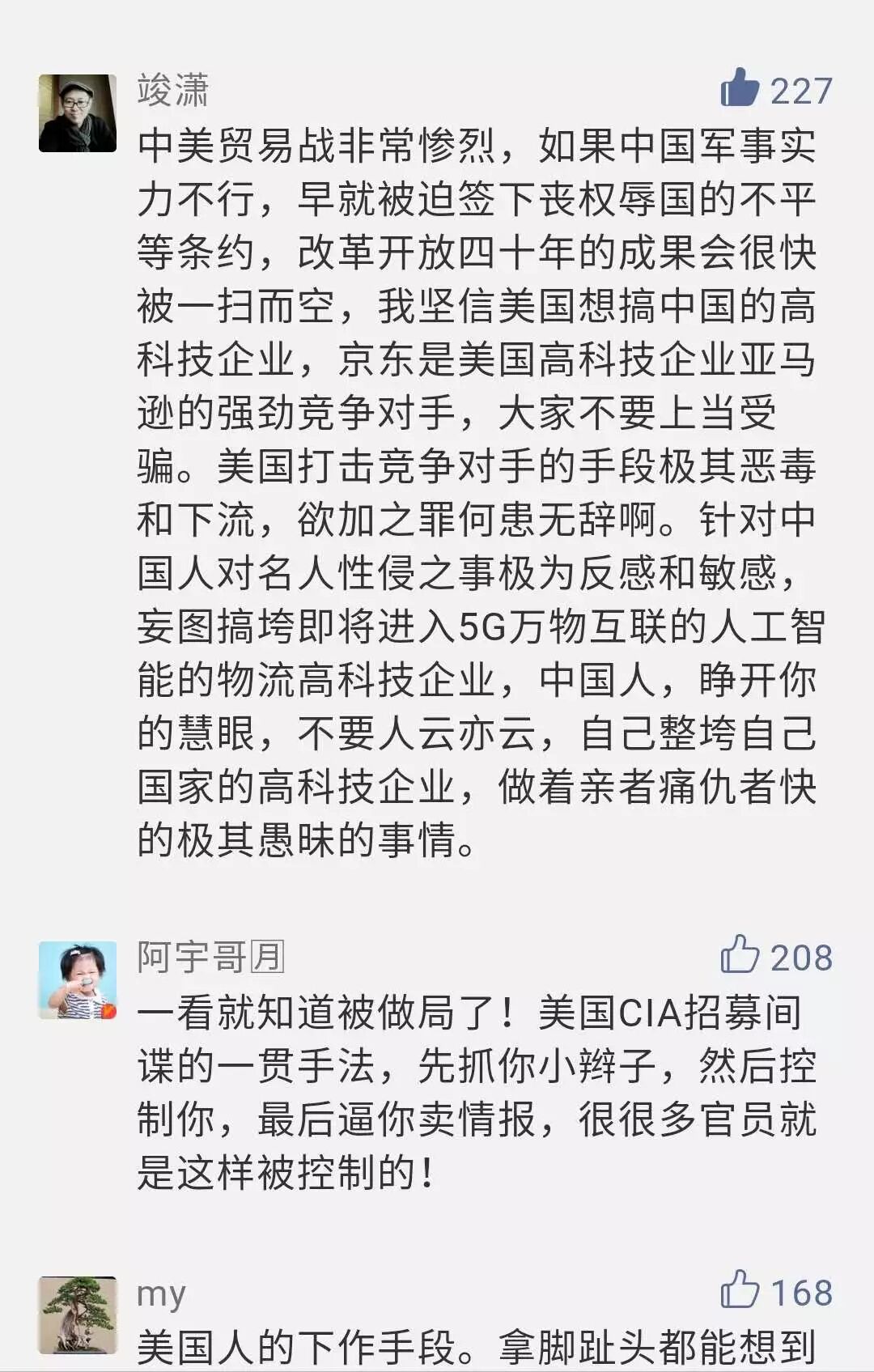 同时,兔死狐悲,如果刘强东这次真的倒下,中国的企业家、资本家们难道不会对国际资本的贪婪与狠毒心怀恐惧?