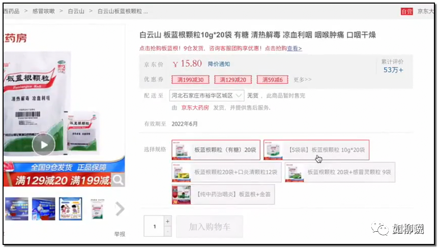 在媒体集中报道的10月16日当天,不仅仅白云山A股全线涨停,线上线下板蓝根立即被疯抢直至断货,不论是京东白云山旗舰店还是天猫官方店板蓝根都在当天断货下架,其它网上药店板蓝根都处于缺货状态。