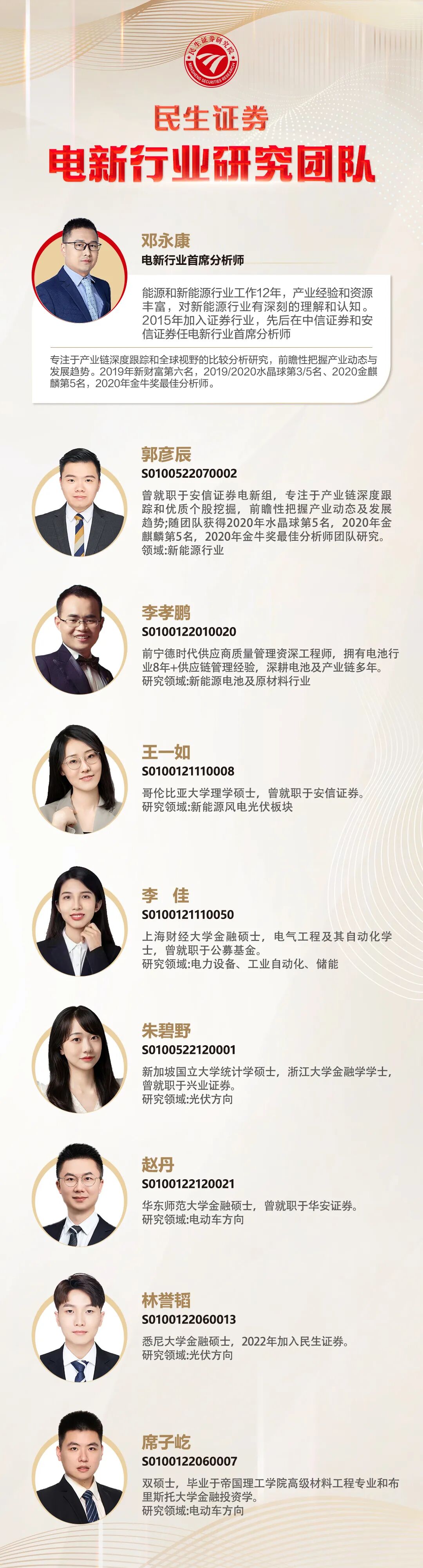 ■投资建议:1)长期竞争格局向好,且短期有边际变化的环节。重点推荐:a、电池:宁德时代;b、隔膜:恩捷股份;c、热管理:三花智控;d、高压直流:宏发股份;e、薄膜电容:法拉电子,建议关注中熔电气等。2)4680技术迭代,带动产业链升级。4680目前可以做到210 Wh/kg,后续若体系上使用高镍91系和硅碳负极,系统能量密度有可能接近270Wh/kg,并可以极大程度解决高镍系热管理难题。重点关注:a、大圆柱外壳:科达利、斯莱克;b、高镍正极:容百科技、当升科技、芳源股份、振华新材、长远锂科、华友钴业、中伟股份、格林美;c、布局LIFSI:天赐材料、新宙邦。3)看2-3年维度仍供需偏紧的高景气产业链环节。重点关注:a、隔膜:恩捷股份、星源材质、沧州明珠、中材科技;b、铜箔:诺德股份、嘉元科技、远东股份;c、负极:璞泰来、中科电气、杉杉股份、贝特瑞、翔丰华等。4)新技术带来明显边际弹性变化。建议关注:a、钠离子电池的:振华新材、容百科技、传艺科技、维科技术、元力股份;复合集流体方面的宝明科技、东威科技、元琛科技。