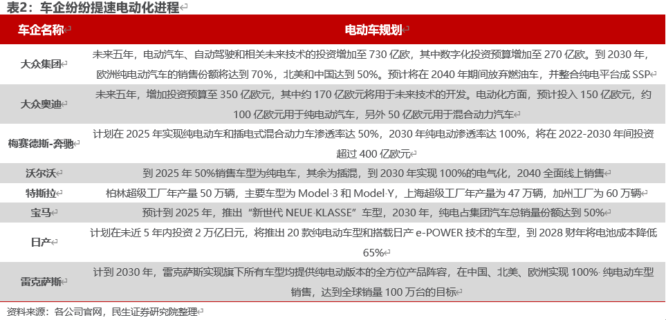 2.2 车企电动化战略频亮剑,群雄逐鹿格局加速形成