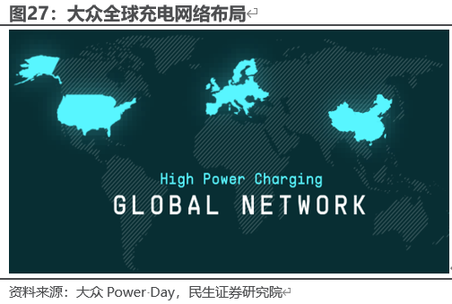 布局电池相关领域,实现商业闭环。大众在2021年3月的Power Day上公布了到2030年的电动技术规划,电池是转型中的重点布局对象。生产方面,大众的电池布局包括外购、合作研发、自研三种方式,在其电动化早期需求较小阶段,大众向三星SDI等动力电池厂进行小量购买,随电动化战略逐渐明晰,后两种方式逐渐占据了较大比重。大众计划在2030年前与伙伴在欧洲建立六座电芯工厂,合计年产能240GWh,其中与瑞典Northvolt合资的和自有的萨尔茨吉特两座40GWh工厂将分别于2023年和2025年投产;在中国,大众已成为锂电龙头国轩高科的控股股东,在安徽合肥启动了年产20GWh的标准电芯项目。技术方面,大众力推标准电芯,可分别减少入门级和量产级电芯的50%和30%的成本,将电池单度电成本控制在100欧元内,该标准电芯将于2023生产并于2030年覆盖集团旗下80%电动车的电池需求,此外,大众也投入开发前沿技术,包括材料体系优化和固态电池等。充电设施方面,大众将完善全球补能网络以覆盖相应的新能源车需求,计划在2025年前在欧洲建设18000个公共快充点,在美国建设3500个快充点,在中国与CMAS合作建立17000个快充点。数字化方面,大众会对现有MEB平台车型提升智能互联功能,并打算推出SSP平台,研发L4、L5级别的自动驾驶技术。大众通过对于电池研发到造车,乃至材料循环等各个环节的掌握将建立强大产业链,实现降本增效,促使其成功完成电动化转型。