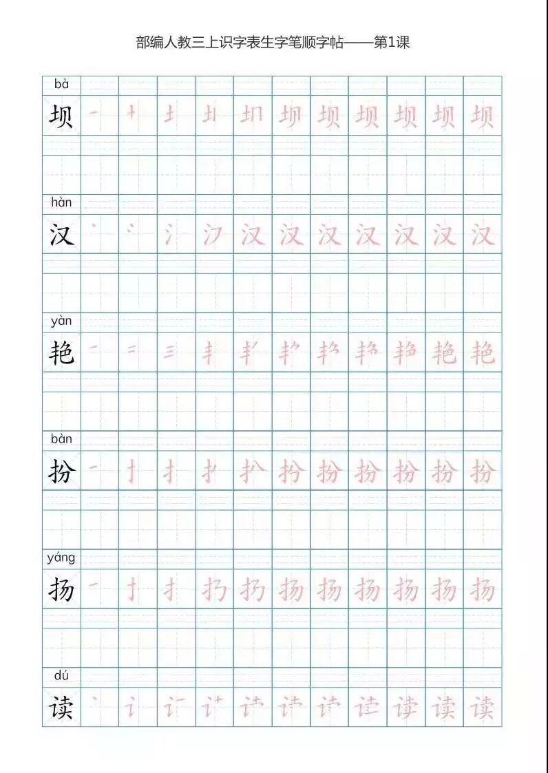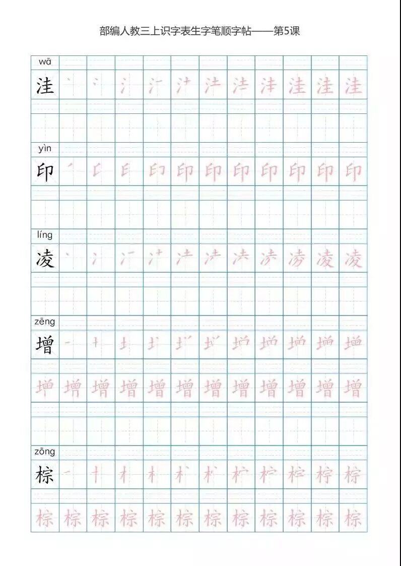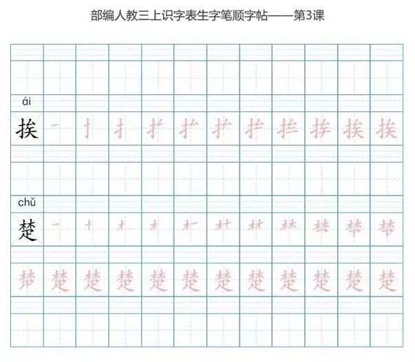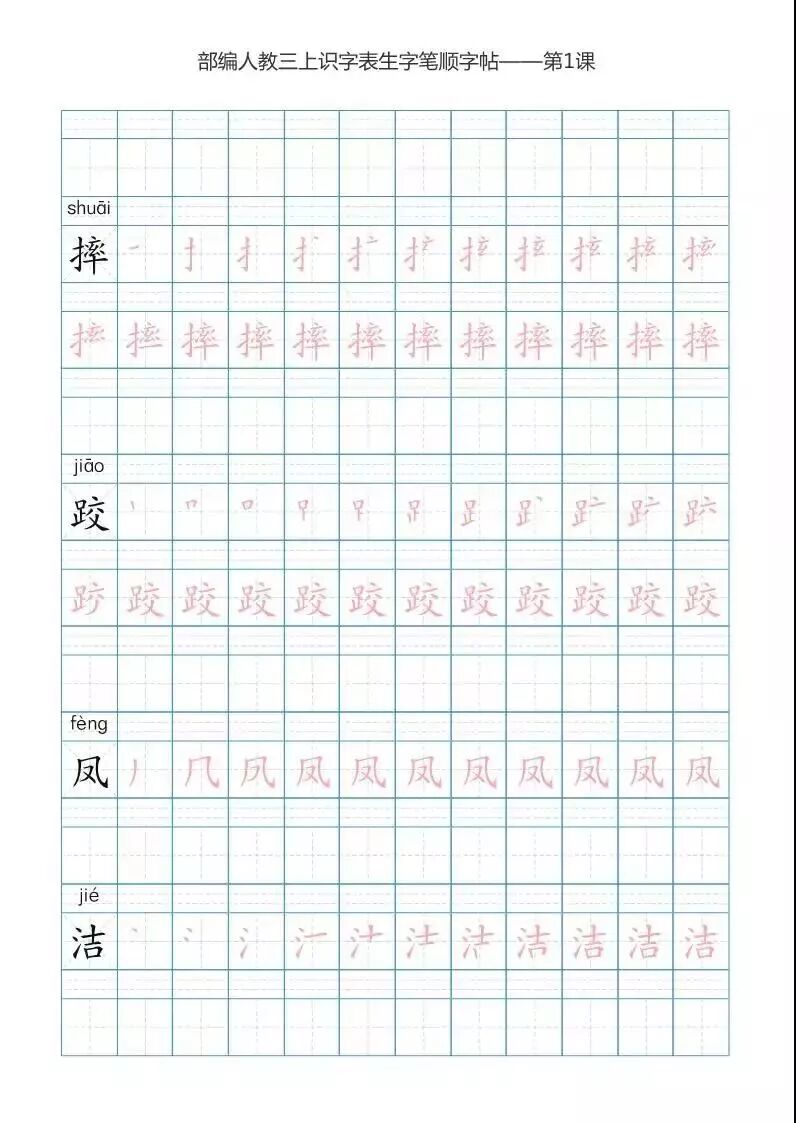 今天话筒君,分享给各位家长和老师的是《部编版语文三年级上册5套字、音练字帖,带拼音、笔顺》。字帖一共有五套。大家可以根据自己的喜好自行选择、打印。让孩子在暑假多多练字,多多预习,为下学期的进步,打下一个坚实的基础