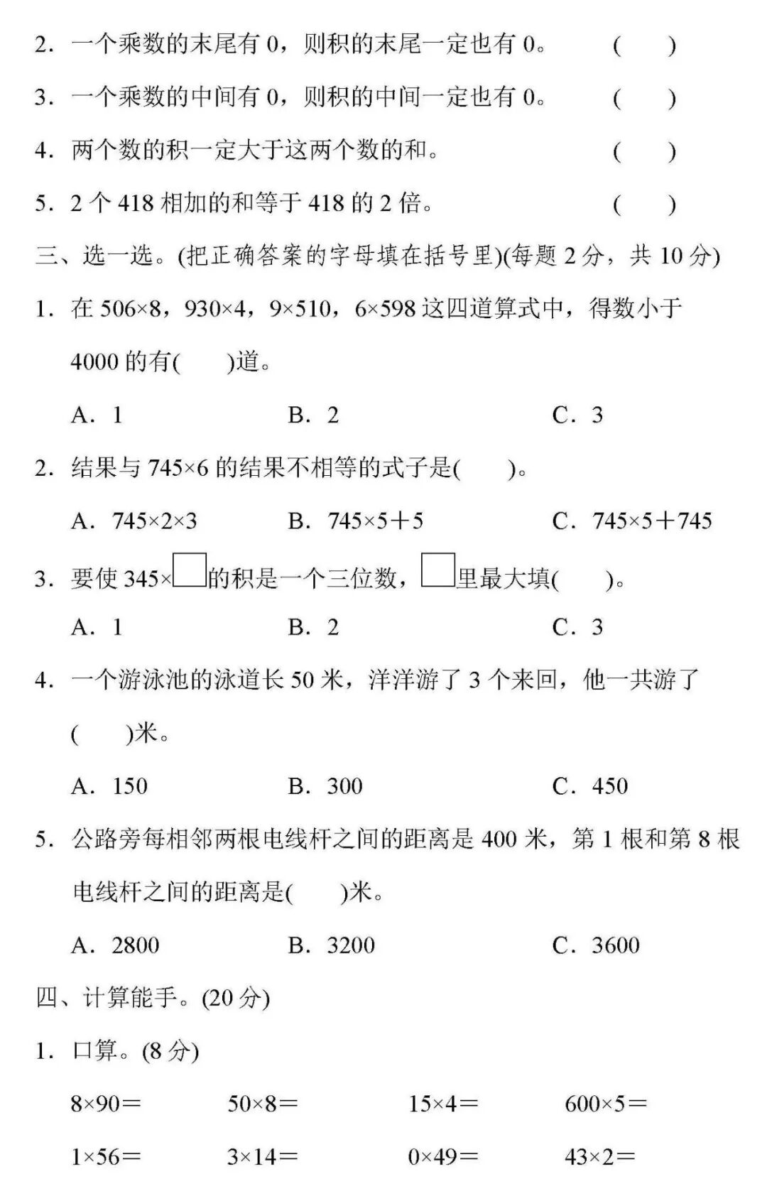 ☞700套人教版数学(上册)1-6年级课课练、单元试题、期考试题