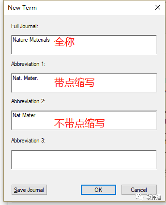 ▍设置Style的期刊格式:导入的Styel一般默认期刊名为全称,需要自行设置格式,如Advanced Materials期刊引用Nature Materials的正确期刊名为Nat. Mater.(带点缩写)