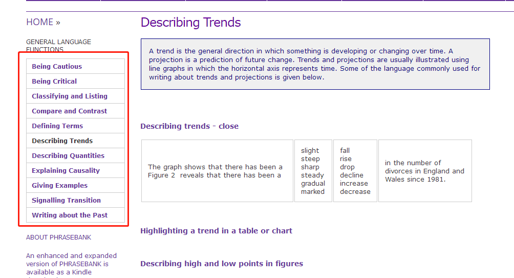 该网站的左边一栏,大家不要忽略哦,也是硬核干货呢。如何做批判、如何描述一种趋势、如何进行分类罗列、如何举例等等,为发愁、抓狂的你出谋划策,提供例句模板!