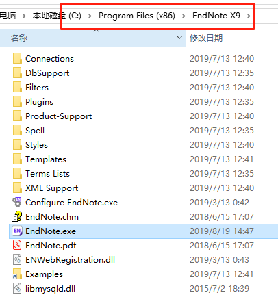 找到EndNote软件安装目录