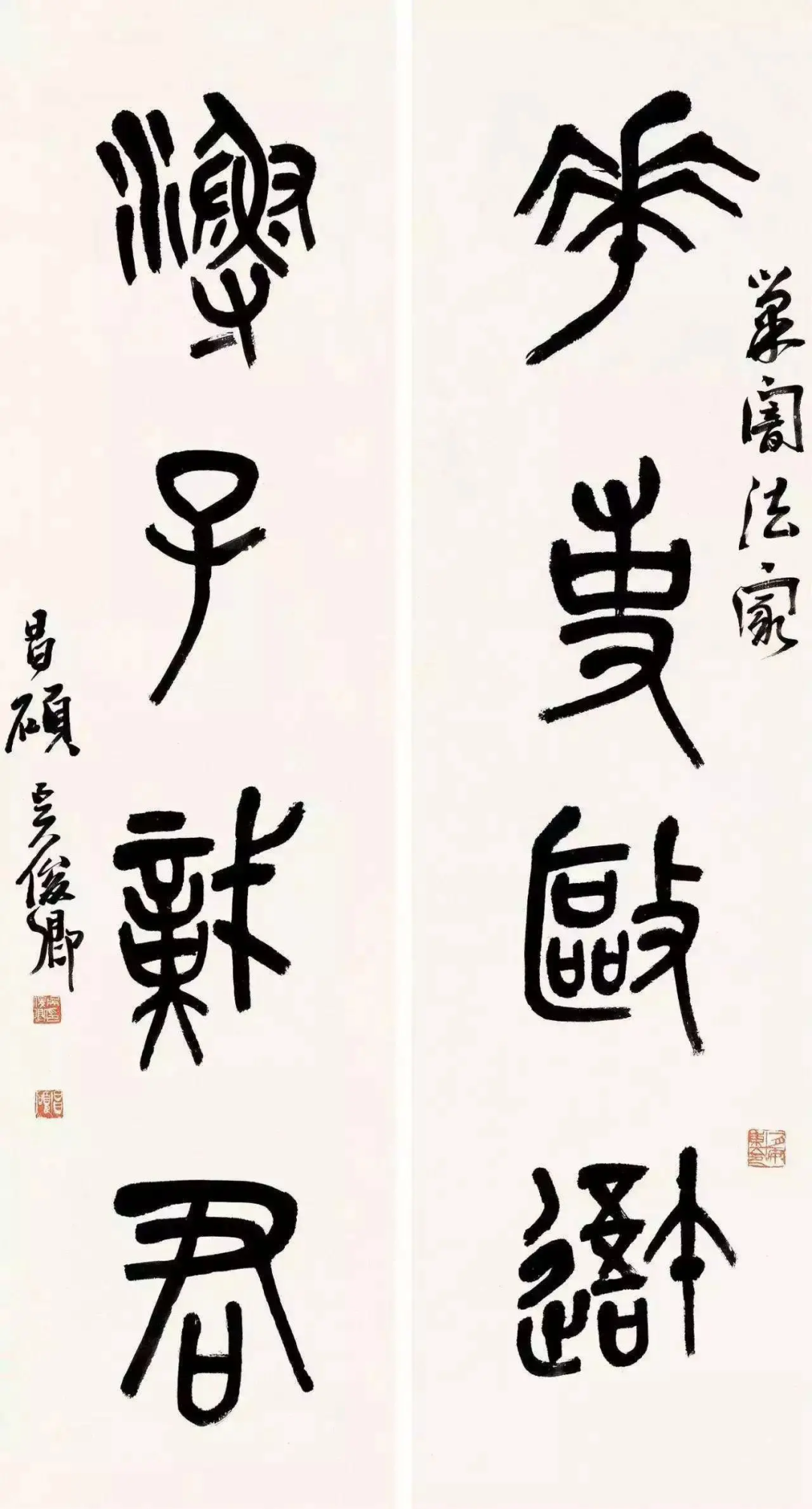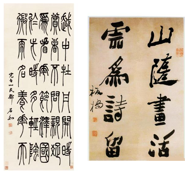 条幅,又叫“竖幅”,是书法作品中最常见的表现形式。它体取纵势,装裱后称之为“立轴”。条幅的长度与整张宣纸相同,宽度是整张宣纸的对开或三分之二开。可书写单行大字或数行小字。为了增强条幅的表现力,许多书家在章法的形式上作了可贵的探索,例如:用几个团扇、小斗方等组合成条幅,等等。