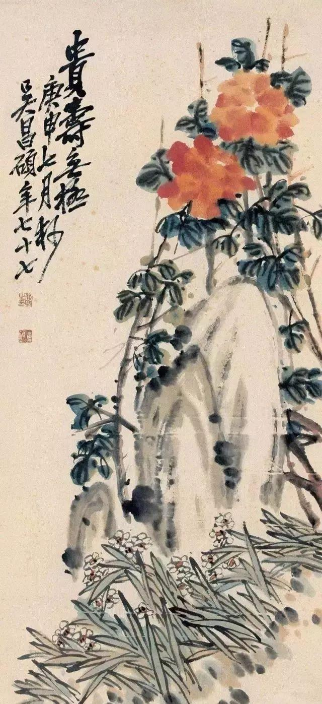 吴昌硕(1844.8.1-1927.11.29),浙江省孝丰县鄣吴村(今湖州市安吉县)人。原名俊,又名俊卿,字昌硕,又署仓石、苍石,多别号,常见者有仓硕、缶庐、苦铁、大聋、老缶、老苍、缶道人、石尊者等。晚清民国时期著名国画家、书法家、篆刻家,“后海派”代表,杭州西泠印社首任社长,与任伯年、蒲华、虚谷合称为“清末海派四大家”。集“诗、书、画、印”为一身,融金石书画为一炉,被誉为“石鼓篆书第一人”、“文人画最后的高峰”。在绘画、书法、篆刻上都是旗帜性人物,在诗文、金石等方面均有很高的造诣。