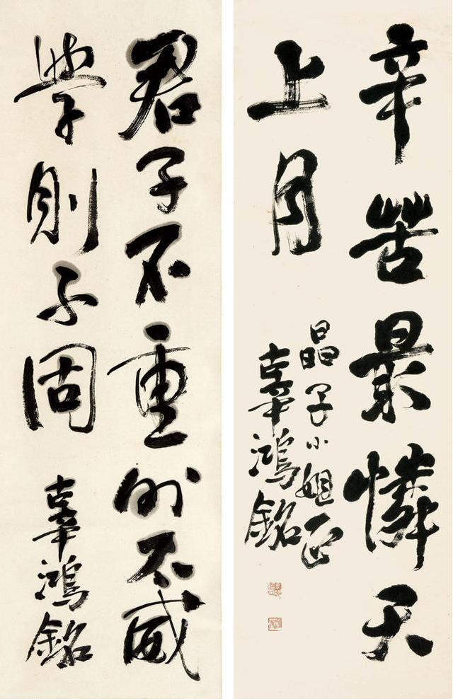 书法上,辜鸿铭似乎也突破了所谓的条条框框,在他的笔墨上却表现出不一样的精致。用笔上看似有些随意,但是也好像是有意而为之的,也非常巧妙,而在点画的排布上,以及点画之间的关系处理上,都体现出一种别致的理解和见地,可见,他的思想是独到的,也是和普通人不太一样的,有些人看到他的书法后,这样说道,他的书法是中西合璧,其实也不无道理,毕竟他受到的西方文化的熏陶还是非常多的。