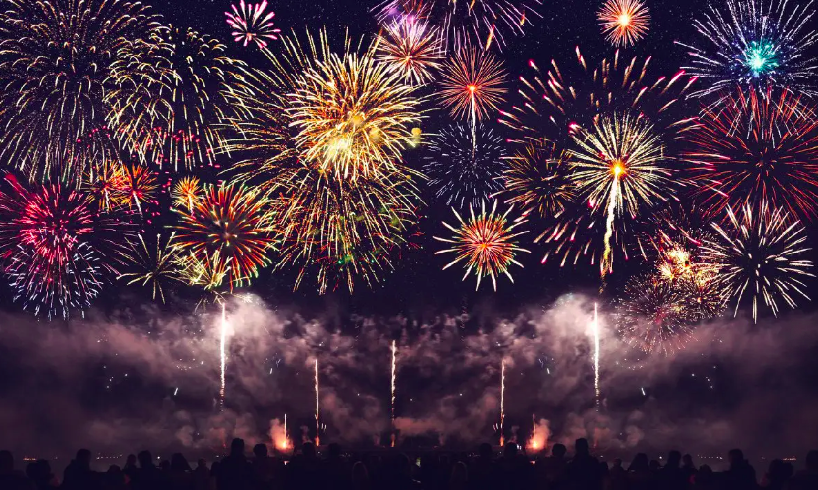 抬头仰望夜空,烟花划过
