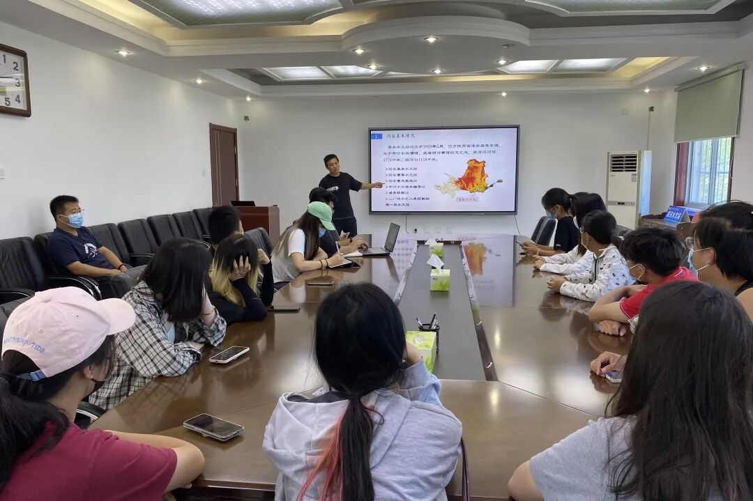 潼关水文站位于渭河、北洛河与黄河的交汇处,承担着降水和水位观测、流量及泥沙测验、冰情及水质监测、水情报汛、河道巡查等重要任务。7月6日上午,实践队来到黄河水利委员会潼关水文站参观考察,了解基层水文站的工作情况。首先,潼关水文站工作人员向大家介绍了相关水文设施,并讲解了每种器材的工作原理和使用方法。在泥沙室和水情室,整齐排列的泥沙原样和展示出来的测验数据,让同学们感受到基层水利人的敬业、严谨与勤勉。随后,姚站长从测站基本情况、测站党建工作、业绩荣誉三个方面介绍了水文站的基本情况,并着重从测站沿革、测验河断面情况、水沙特性、潼关高程、测洪方案、大型基本测验设施设备情况、水文现代化测验仪器设备情况做了讲解。同学们认真听取了讲解、观看了潼关水文站防汛实录视频,并结合所学专业知识提出了相关问题,姚站长逐一予以解答。