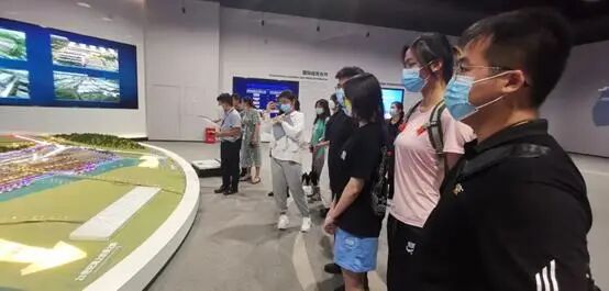 在工作人员的带领下,实践队员来到多式联运枢纽展厅,认真听取工作人员讲解,了解到在总书记“把港口建设好、管理好、运营好”的殷殷嘱托下,长江黄金水道、西部陆海新通道、中欧班列(成渝)已经在果园港实现了无缝贯通,果园港逐渐成为“世界的中转站”。经过多年的建设,集装箱“无纸化”平台系统、“无人”理货系统、智能闸口系统、EDI海关数据交换系统和件散货管控一体化系统相继建成投入使用,果园港的智能化水平不断提高。作为长江经济带的重要节点,果园港积极贯彻习总书记“共抓大保护,不搞大开发”的理念,从2017年开始就启动了“绿色港口”建设,采取有力措施降低水污染、噪音污染和大气污染等。同时重庆港务物流集团还加快发展绿色航运,真正实现了港口作业零污染零排放。通过不懈努力,港口不仅变得更智慧,也变得更绿色了。
