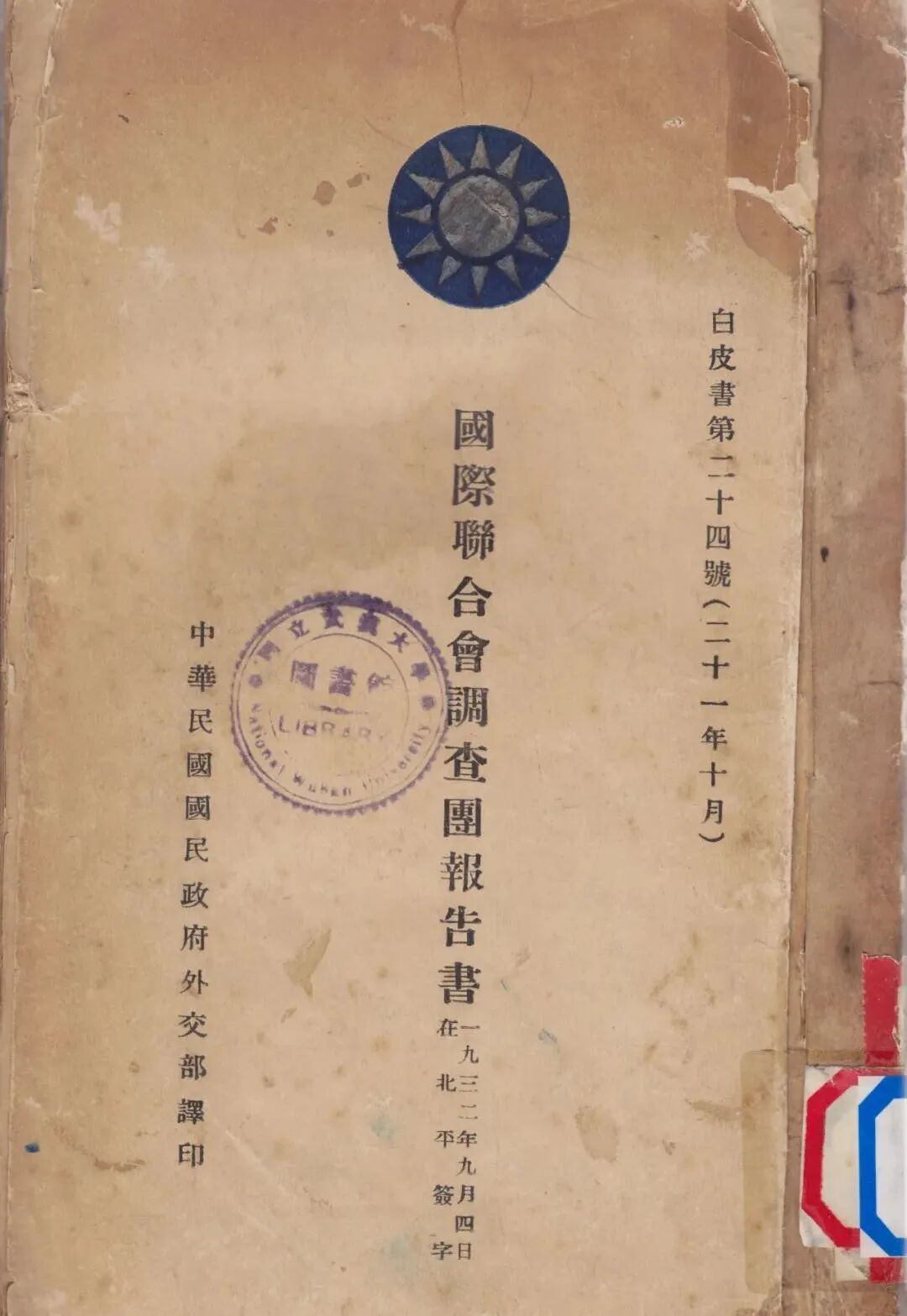 ▼武大图书馆所藏《国际联合会调查团报告书》(1932年)