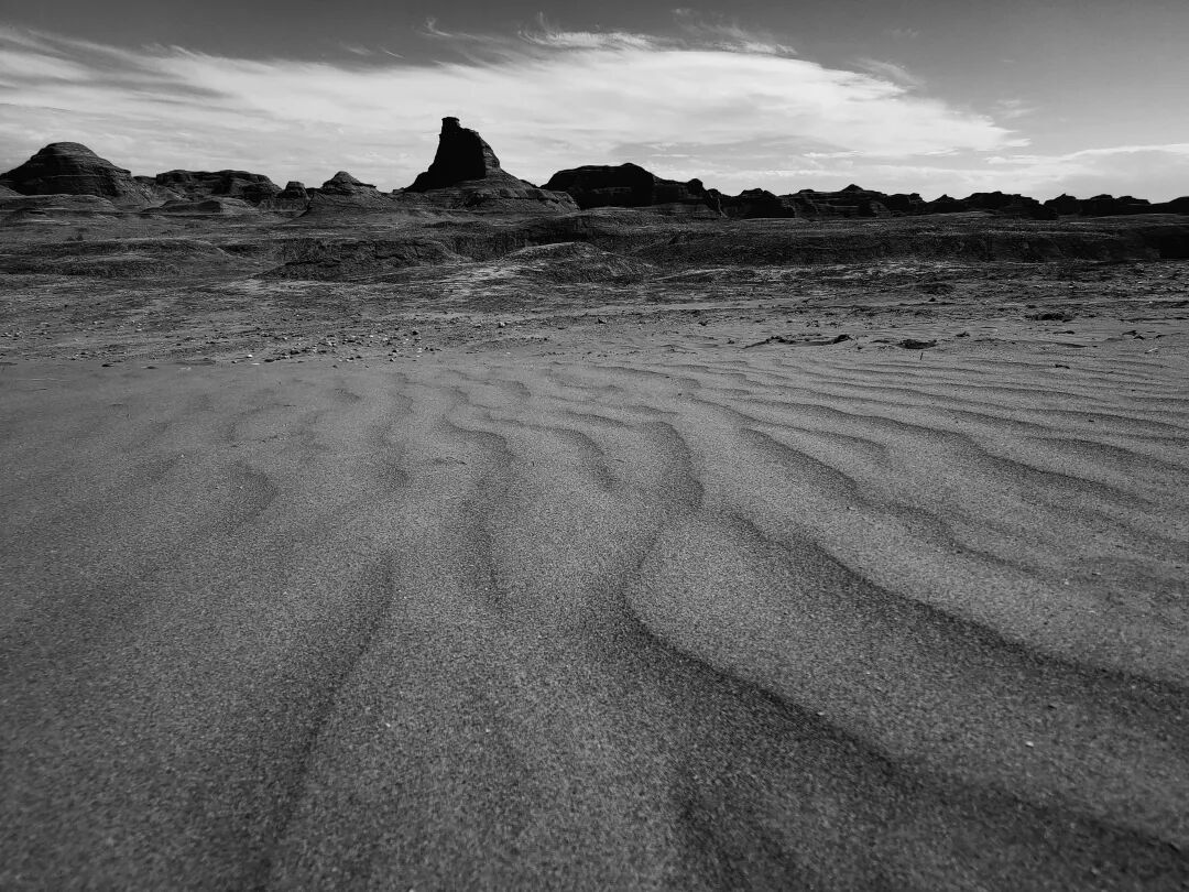 这是一张我们在魔鬼城里拍摄的沙地,这张图中,拍摄时摄影师一个很重要的想法就是通过寻找角度让沙子的颗粒更加明显,而这样做的目的就是当读者看到画面时,立刻能够想到自己的手对于沙子的触感。