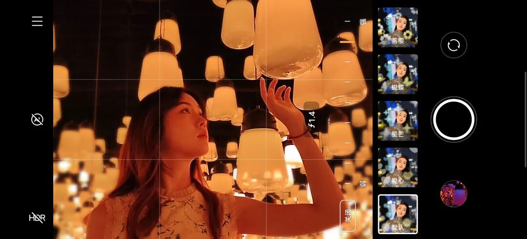 在镜头区域切换一侧的是针对性的效果设置,根据拍摄模式不同也略有差异。不过总得来说,主要包含美颜效果、色彩滤镜、镜头虚化能力等等。