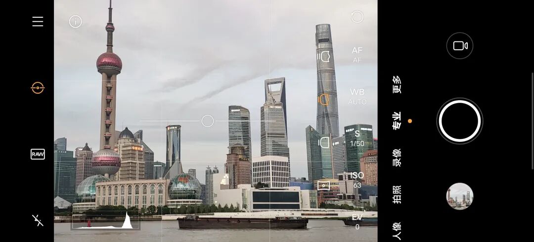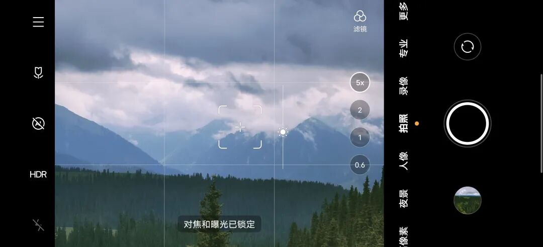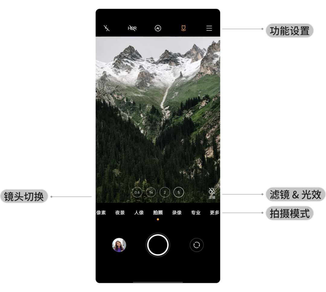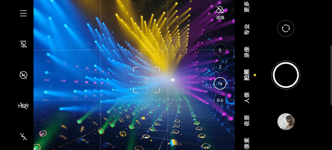用于画面的实时预览。虽然这里没有任何功能设置,但还是要说一句题外话。安卓手机和 iPhone 一个明显的不同就是取景是否可以所见即所得。iPhone 几乎没有任何差异,过去几年里安卓则差异巨大,尤其是很多手机品牌为了优化,甚至会出现截然不同的结果。