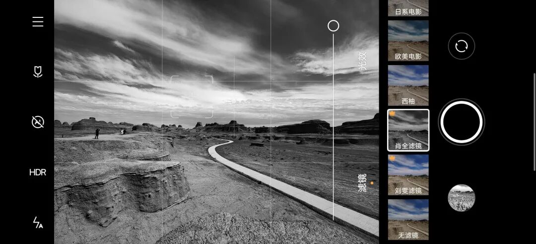 2. 安卓手机的滤镜系统有些不能后期追加。比如在 vivo X60 Pro+ 中,有两个我非常喜欢的滤镜,一个是肖全的黑白滤镜,一个刘雯的彩色滤镜。这两个滤镜都有着非常迷人的影调和色彩风格,但是只有在前期拍摄以后才能选择,不能在现有的照片上添加。