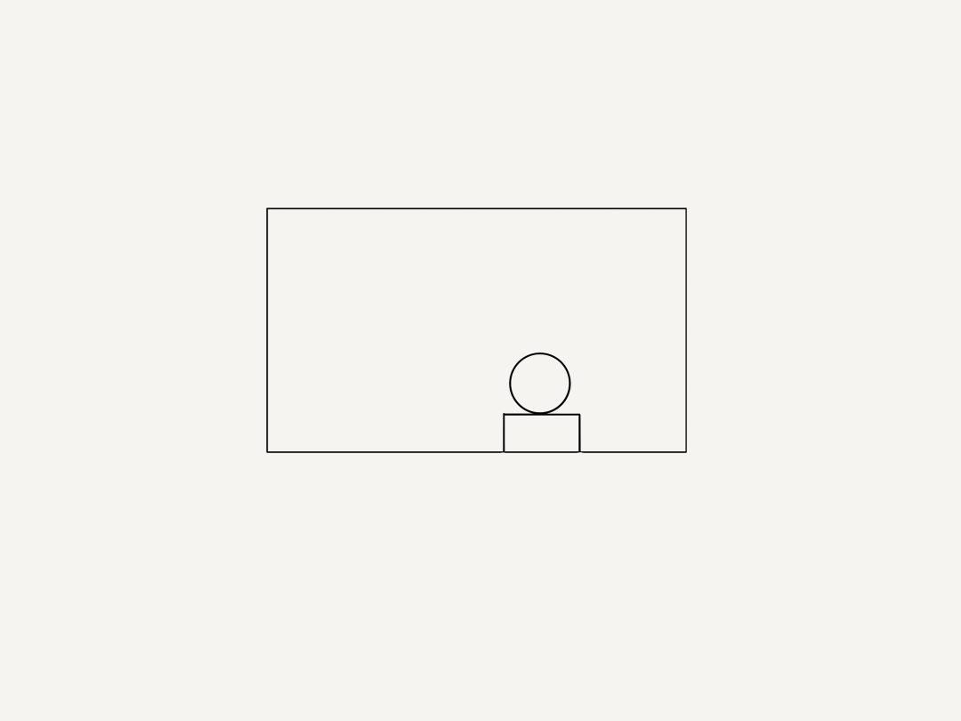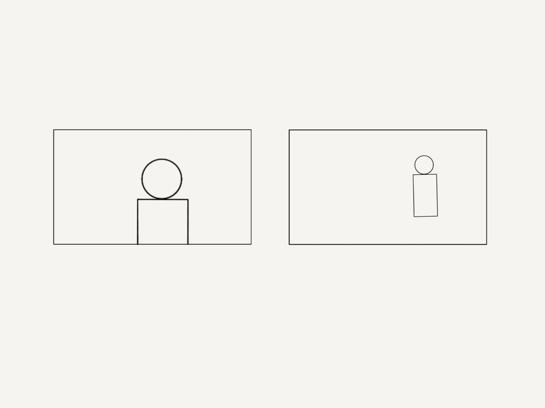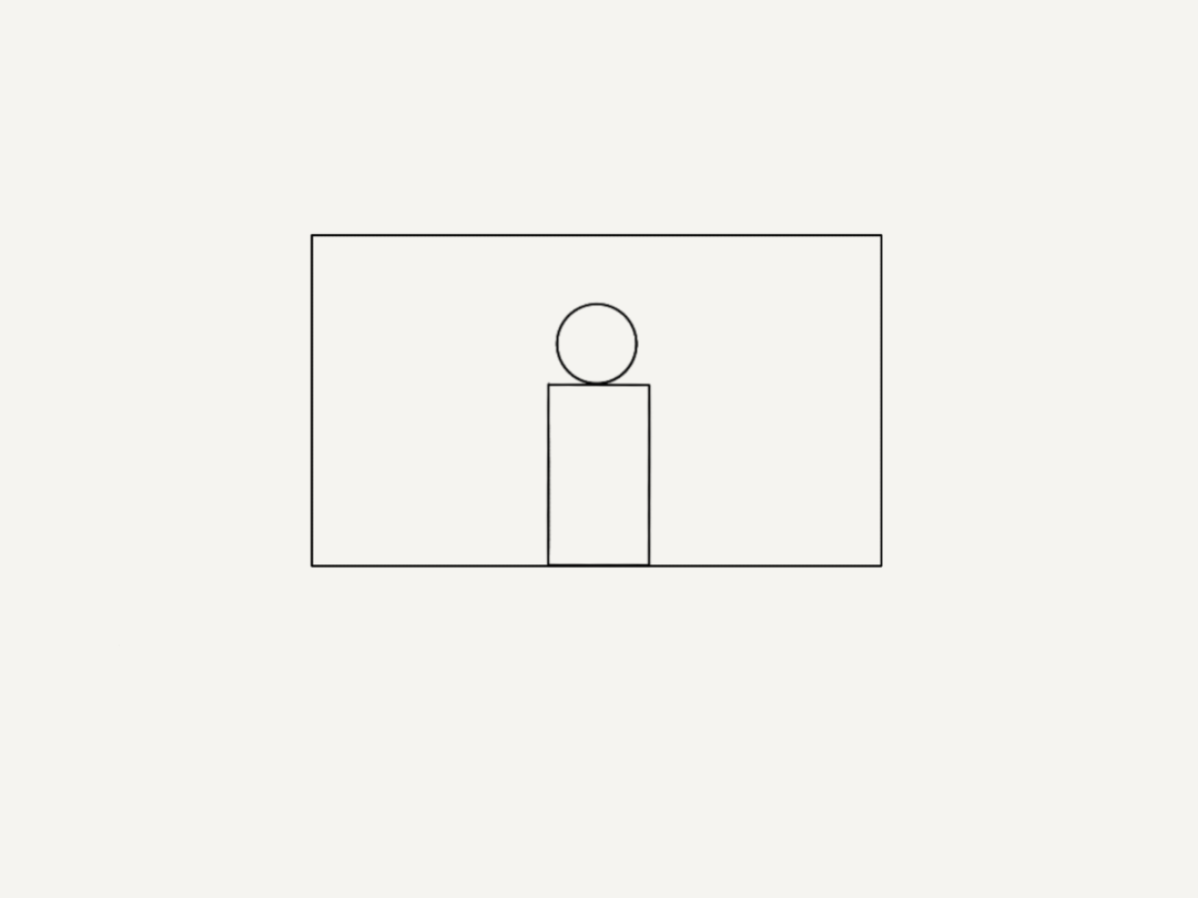 所谓的基础构图本质,就是画面中元素的摆放。想象一下,我们的照片无非就是一个二维形状的空间筛选。比如下面这张图中,白色的范围就是画面的取景范围。而基础构图就是把画面中的元素安排在这个区域内。比如我们现在有一个人物,就叫他张三吧,它的大致形状可以抽象为一个圆形和连接一个长方形。
