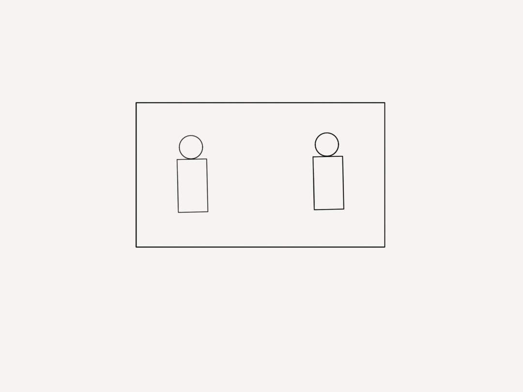 元素对称并没有镜面对称这么直接,因为镜面对称是光线的基本原理,是肉眼可见的。而接下来的元素对称则需要一点想象力。比如我们再次请回我们的张三同学,在下面的画面中,我们可以看到张三同学站在画面的一侧,而另一侧又站了另一个李四同学。