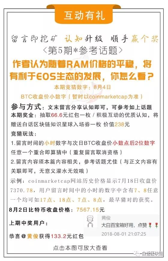 说回RAM扩容的方案:每出一个区块RAM增大1KB,即便是缓和的扩容方案,RAM的价格也出现了剧烈的波动,但这是一个很好的“去泡沫”的过程。既然RAM扩容方案迟早要推出,那么越早推出,就能越早稳定RAM的价格,对EOS生态稳定发展也越有利。