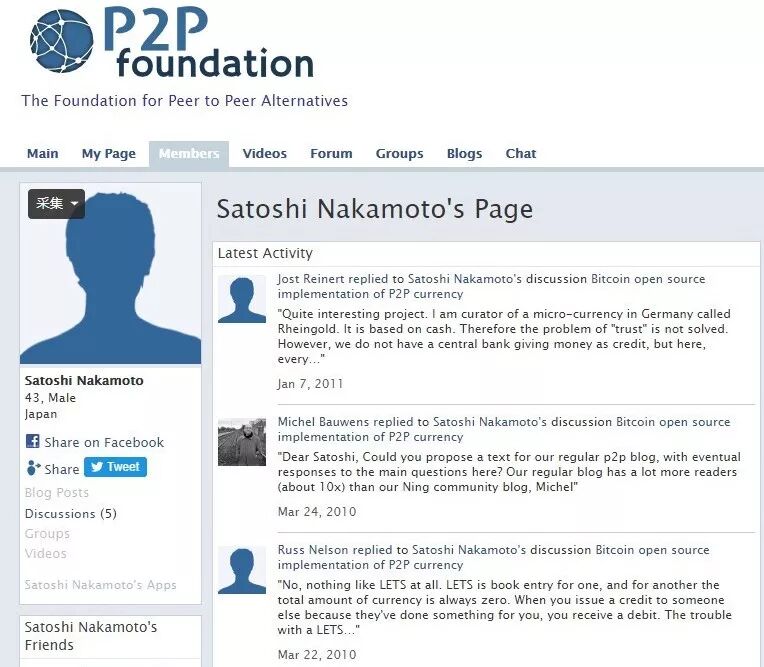 中本聪在P2P Foundation论坛上注册过账户,这是一个讨论P2P技术的论坛,中本聪填写的生日信息是1975年4月5日。