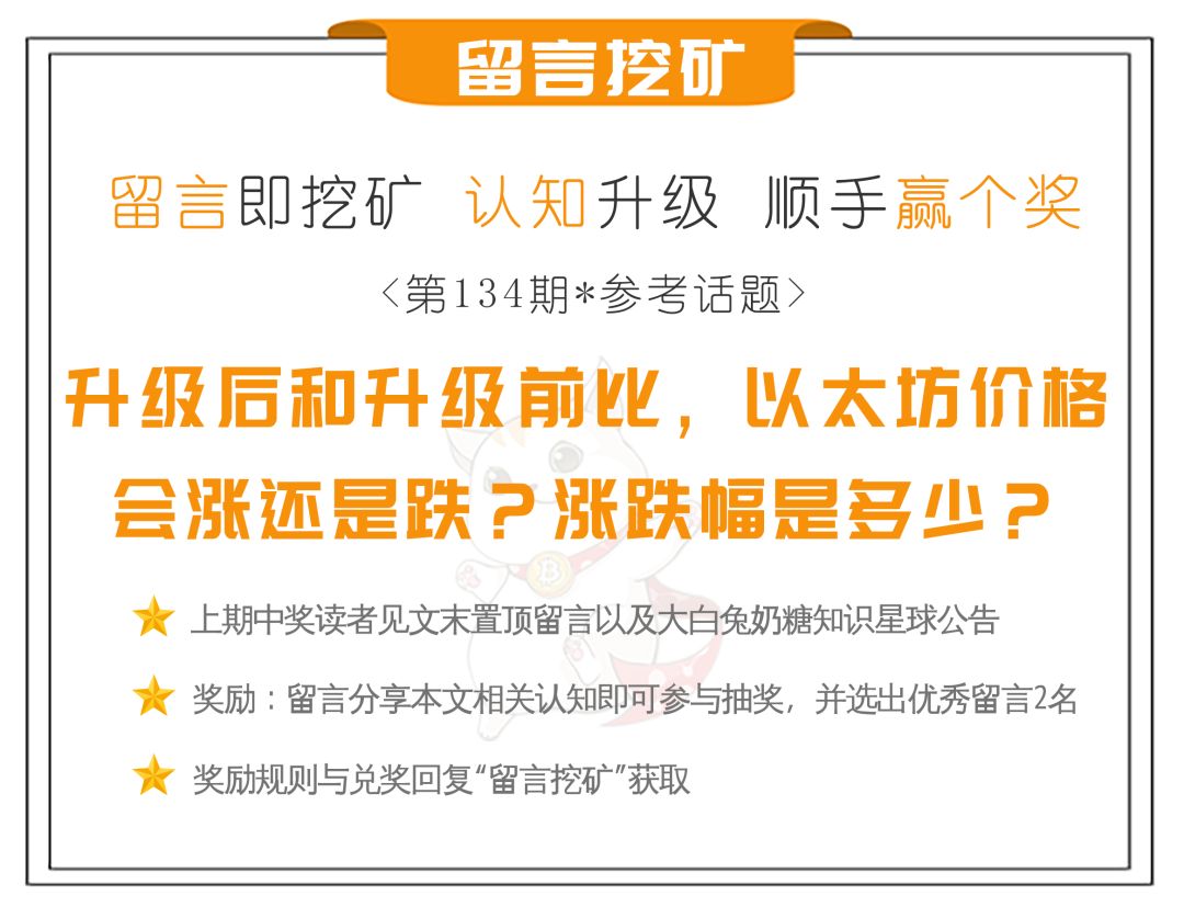以太坊升级完成后一天的价格与升级前一天的价格,会涨还是会跌?你预测的涨/跌幅是多少?欢迎在留言区留言。