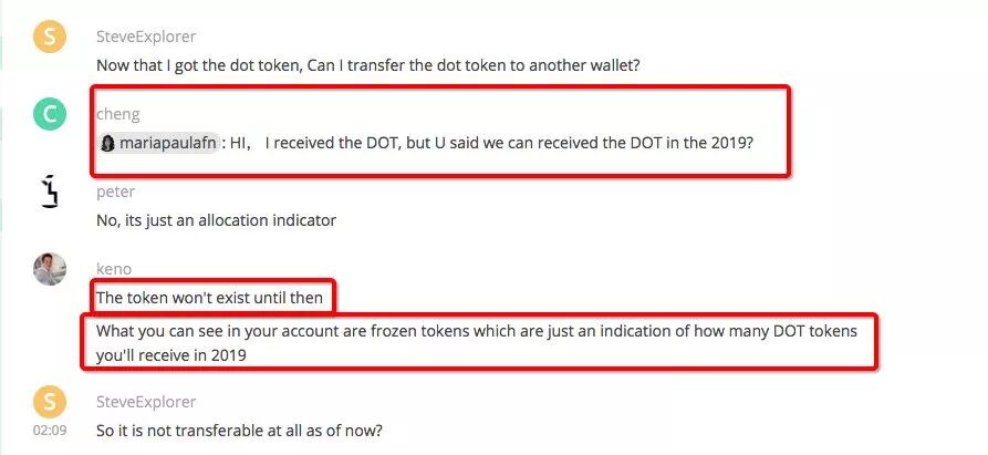 2019年,解冻后这些 ETC-20 Token 可以作为兑换真正 DOT 的凭证(如下图)。当时的融资价格约为每 DOT 30美元左右(融资结束后不久,由于 Parity 钱包的 Bug,当时有价值 0.98 亿美金的 ETH 被冻结了,不过项目方称开发资金没问题,可以按正常的时间表推进)。