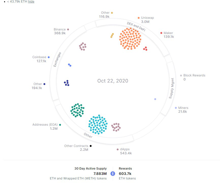 截至10月22日,目前有350万枚ETH(超过以太坊总量的3%)每天通过发送到Uniswap为代表的DeFi应用之中——仅Uniswap接受的ETH数量,就已然比所有CEX的总和还要多。