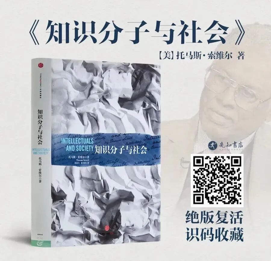 索维尔对于知识分子的批判,无异于一针醒脑剂,可以让大家从对知识分子的盲目崇拜中清醒一下,学会如何筛选优秀思想,建立一份“思想的白名单”。同时本书也堪称一本启蒙的必备书,因为所谓启蒙,恰恰不是让人不假思索的相信盲从什么,而是让人用自己的思维,来照亮自己。为此,先知书店独家诚荐托马斯·索维尔的《知识分子与社会》。本书中译本早已绝版,因价值极大,特少量复活,感兴趣的读者,可点击下图,一键收藏。