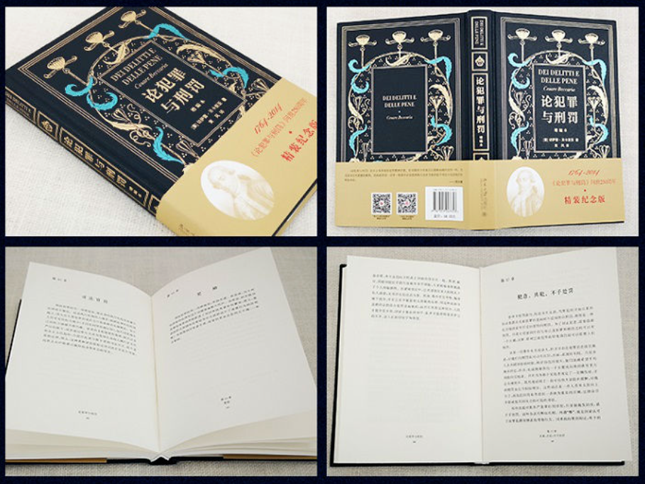 1791年,根据奥地利皇帝利奥波德的指示,贝卡里亚被任命为伦巴第刑事立法改革委员会的成员。委员会的任务是根据伦巴第的特点,研究适用奥地利刑法典的可行性,也可以考虑根据本地情况并参考奥地利刑法典的规定,起草自己的刑法典。利奥波德皇帝继位前曾主持制定过《托斯卡那刑法典》,他非常赏识贝卡里亚的学说,并竭力在自己的立法中加以汲取,比如废除了刑讯、没收和肢解刑,甚至大胆地废除了死刑。现在他亲自把贝卡里亚推上了刑事立法的第一线,为贝卡里亚一展自己的抱负提供了机会。1792年1月12日,伦巴第刑事立法委员会开会讨论死刑是否在新刑法典中继续保留并且在何种程度上保留的问题。以贝卡里亚为代表的另一派认为只有在存在某种“积极必要性”时才有必要对最严重的犯罪适用死刑;第三派主张只针对在实施了最严重犯罪后又杀人的情况规定死刑。由于意见不一致,会议决定暂时搁置此问题的讨论,并向当时主管米兰省的考尼特兹大臣提交了两份附有发言记录的报告。少数派的报告是由贝卡里亚执笔撰写的,这就是《关于死刑问题的意见》。虽已步入暮年,但他依旧慷慨激昂,笔锋仍如年轻时一般锐利:“我们三位签名人坚定地认为不应当适用死刑,除非存在着具有某种积极必要性的情况,在社会的和平状态中并且在正常的司法管理条件下,我们很难发现这种积极必要性,”“除了我们前面列举的那种情况以外,不宜适用死刑。”“其次是因为死刑不如终身刑有效,如果这种终身刑具备有效和持续的公开性;在写下这些深刻而雄辩的文字的两年之后,贝卡里亚因中风在米兰家中与世长辞。他像历史上所有伟人那样,化作人类历史上一颗璀璨的明星,照亮人类文明前行的道理。他对正义的追寻、不屈斗志和超越时代的视野都汇聚在年轻时所著的那本《论犯罪与刑罚》之中。这部著作虽然篇幅不长,但却影响深远,被誉为刑法学乃至法学领域最为重要的经典著作之一。▲《论犯罪与刑罚》封面与内页展示