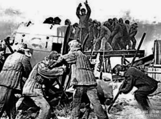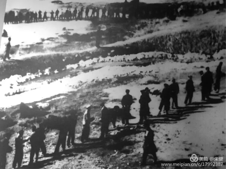 为了争取钢铁厂早日投产。战士们在零下三十度的严寒下,昼夜不停,抢工期。