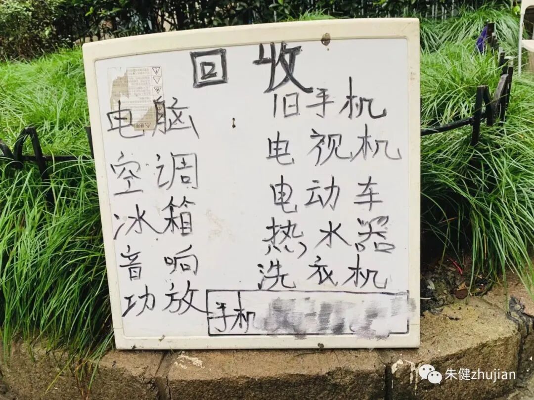 不招惹是非,独孤的坐在绿化带旁,靠着一块小白板,收旧电器。
