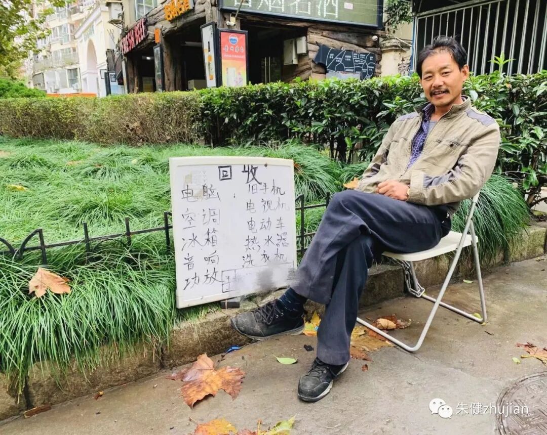 但三百六十行,也有一个歧视链。最被歧视的,就是世俗观念里的——拾荒行业。 社会文明的发展,环保行业的崛起。拾荒业,已被国家正名为: 在我国,废品回收行业,从业人员有1000多万人。比葡萄牙全国人口还多。 现在,他们在全国各城市,已经形成了一个自食其力的庞大的新族群。 他们与城市的市民,同在一个蓝天下。 大家,相互天天见。 体制内所有的人,都有工资、社保、医疗、退休金等待遇。 从2008年开始,每天就有一位男子,坐在绿化带旁边,他身边放了一块很小的白板。 由于,他就坐在我妈家的阳台下面。我爸在世的时候,每天都会跟他聊天,他成为了我爸的好友。 我经常回我妈家。所以,看到朱彬时,我都会主动打个招呼,表示对他的敬重。 关于他的身世,以及这个行业的点点滴滴,都是我们聊的话题。 朱彬小学四年级时,因为交不起学费,为了保弟弟、妹妹读书,他就辍学了。 那,这比总理说的有六亿中国人,月收入不到一千块钱,还要差“八千里”呀! 你只要跟农民兄弟,成为了朋友。他们给你讲真话后,你才会知道,还有一些农村。 1991年,16岁的朱彬,与村里的青壮年一样,走上了背井离乡,到外面的世界,讨“生计”之路。