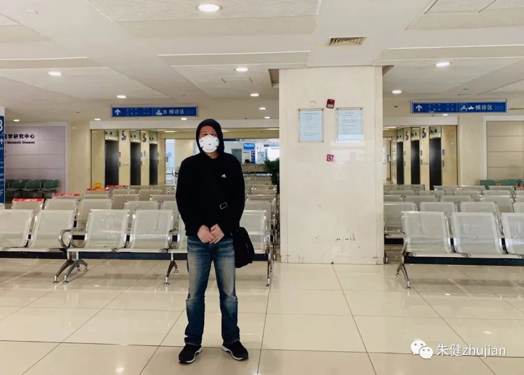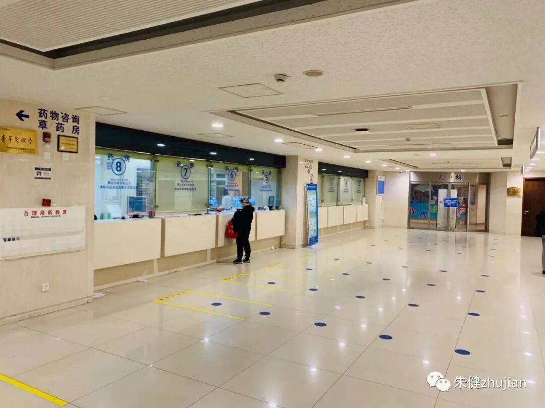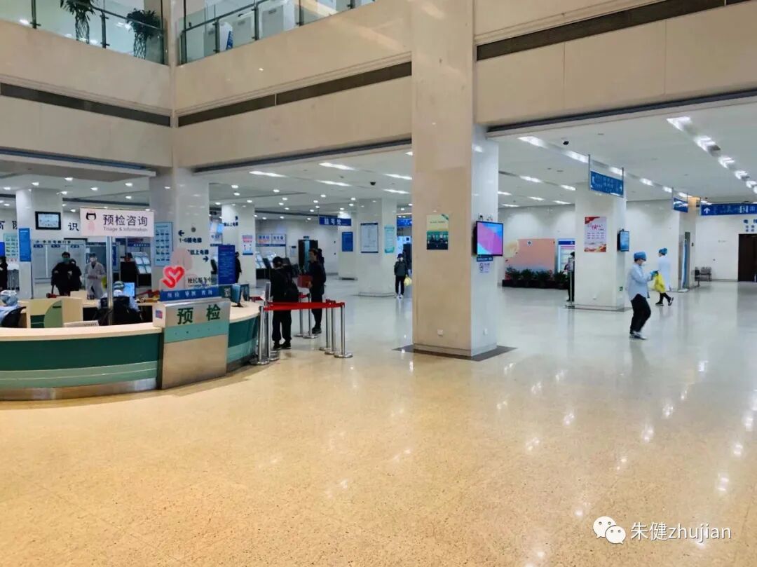 面对,医院“百年不遇”空荡荡的等候大厅。